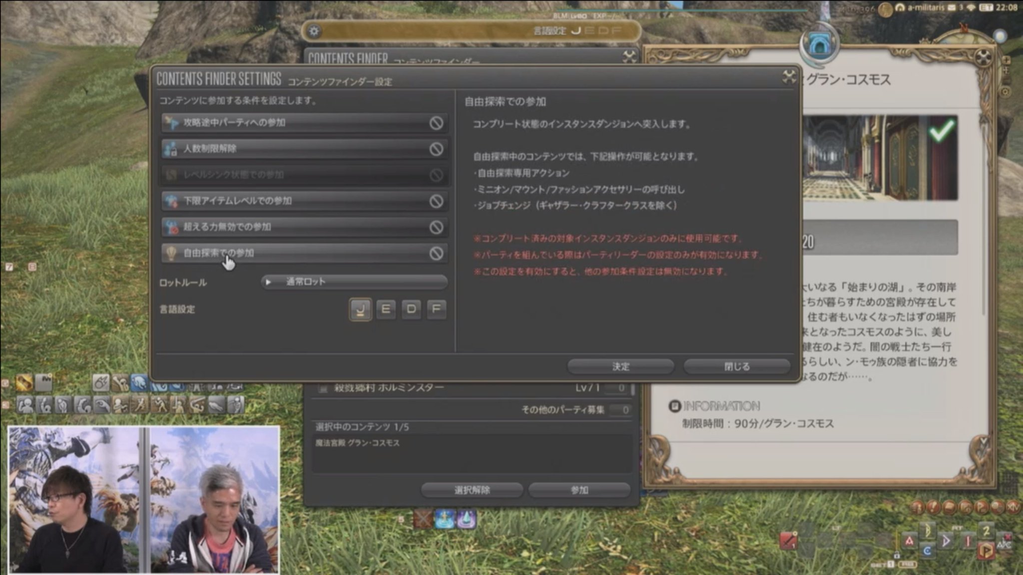 Ff14 コンテンツファインダー 途中参加 などの設定場所 いつものff14